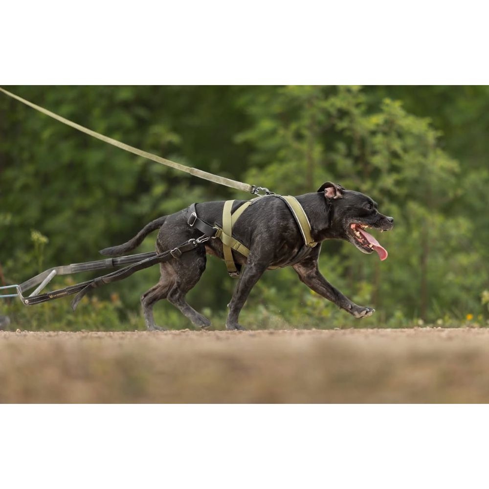 Tasapainotetun vetopisteen ansiosta valjaat pysyvät vakaina ja mahdollistavat koiran tehokkaan työskentelyn ilman, että ne liukuvat ylös kaulaa vasten.